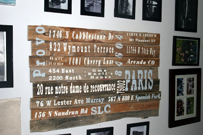 My husband and I have moved about 10 times in the 10 years we've been married. That's an average of once a year! As much as I hate moving, I like the diversity in the places we've lived and grown our family together. As a 10 year anniversary gift I wanted to make Tyler a way to demonstrate this. I've seen several projects on Pinterest that I wanted to try. But then the thought came to me to use the pallet. I originally intended to use the pallet for a shelf (which I did, and I'll show you later) but I didn't want to waste the remaining wood. So I created this rustic looking subway art pallet sign. And I'm pretty happy about how it turned out. And better yet? The husband really digs it too. If you don't want to use family addresses you could use family rules, quotes or whatever to create the subway tile look. I was inspired by