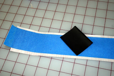 12. Now add transfer paper to the top. Or, to save money, I used painters tape. It worked really nicely. My lettering was just under the width of the thick painters tape. It's just sticky enough to hold it together but not so sticky that it won't peel off.